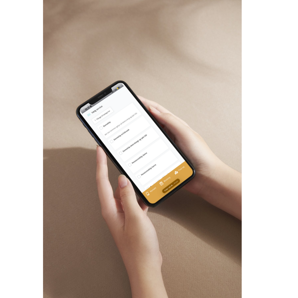 Vi sørger for opsætning af bookingplatformen med din salons priser. Kan downloades som app.